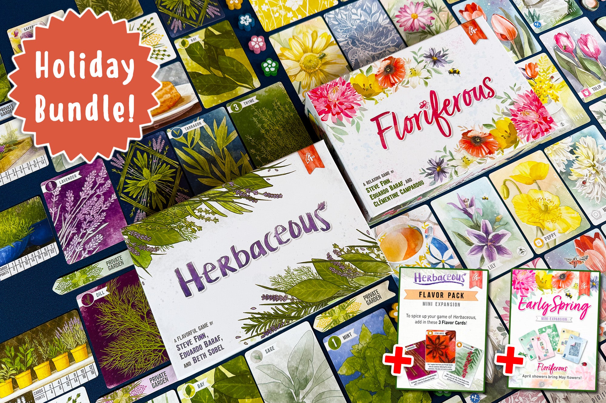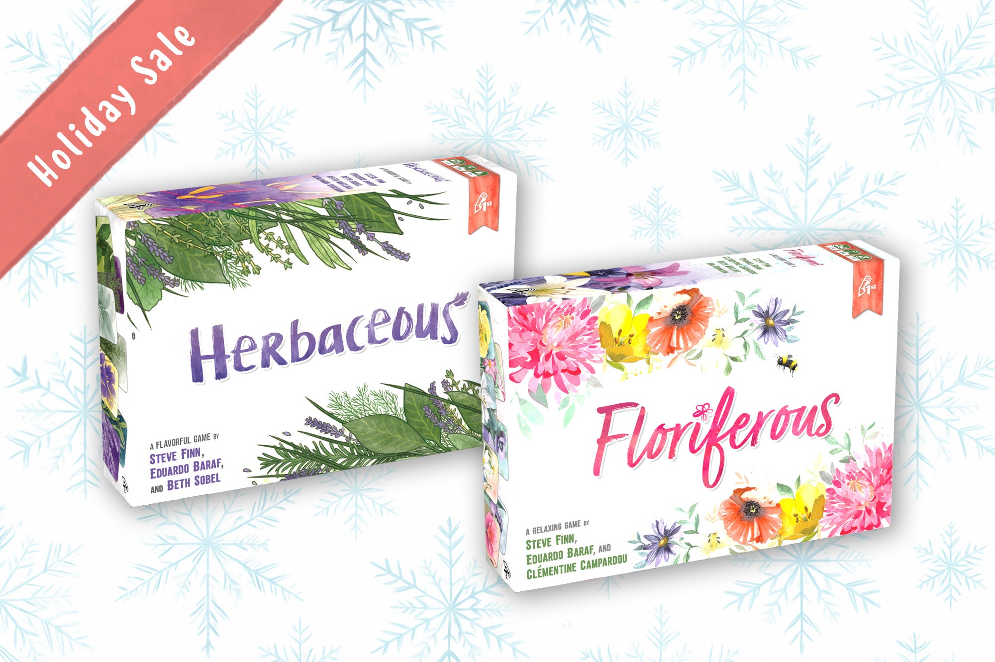 Choose the perfect botanical gift set for the holidays! Herbaceous and Floriferous are approachable, relaxing, and visually beautiful games designed for all sorts of players. Enjoy this pair of delightful games for 1-4 players and bring the calm and color of springtime blooms to your holiday season.